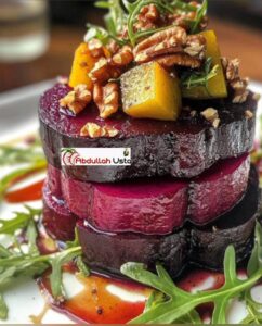 Bu lezzetli ve sağlıklı Kızarmış Pancar ve Roka Salata Yığının tadını çıkarın!