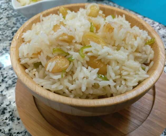 BİBERLİ BADEMLİ PİLAV TARİFİMalzemeler2 su bardağı pirinç2 adet sivribiber100 gr badem3 yemek kaşığı tere yağ1 çay kaşığı tuzYapılışıPirinçleri hazırlayalım tencereye yağı koyup eritelim bademleri koyup