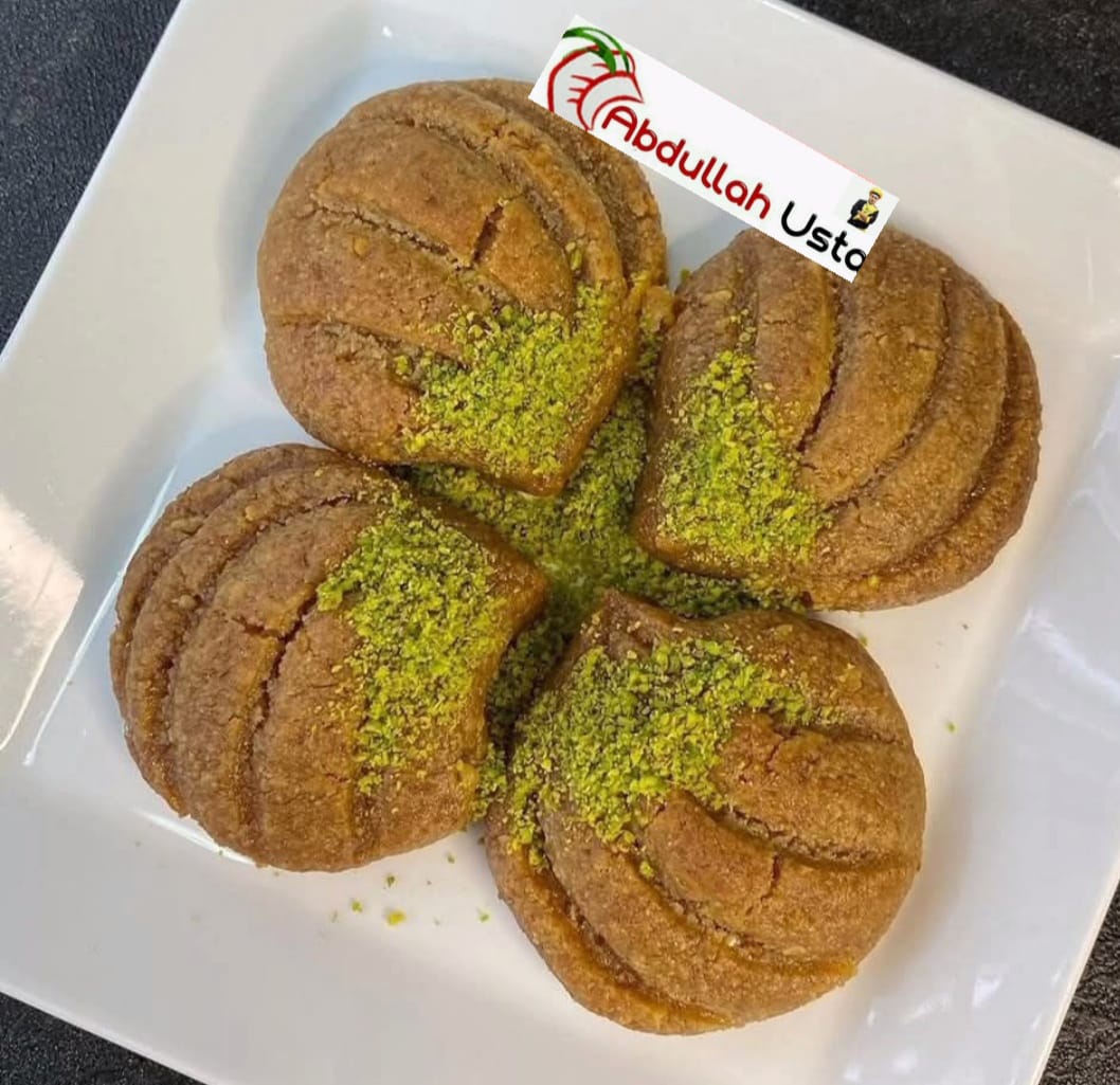 Hamur için malzemelerin hepsini uygun bir kabın içine alıp karıştırıp yoğuralım yumuşak bir hamur elde ediyoruz ceviz büyüklüğünde parçalar koparıp bıçakla veya bardak yardımı ile benim yaptığım gibi istiridye deseni verelim bütün hamuru bu şekilde yapıp tepsiye dizelim önceden ısıtılmış 180 derece fırında üzerleri kızarana kadar pişirelim pişen tatlıyı fırından alıp soğuk şerbet ile buluşturalım şerbeti çekene kadar tepiside tutalım üzerine fıstık tozu ile servis edelim afiyet olsun