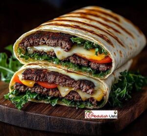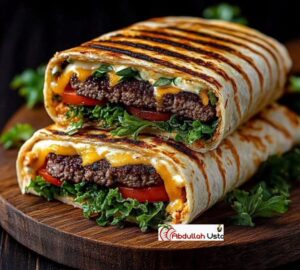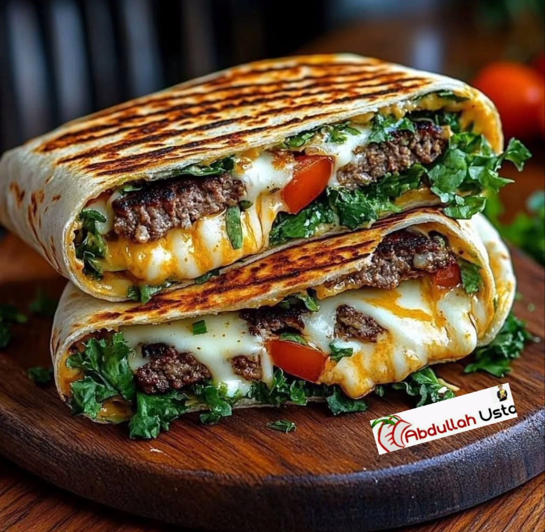 Sarmayı topla: Her bir tortilla üzerine, pişmiş dana eti, rendelenmiş peynir, taze lahana ve doğranmış domatesi kat.