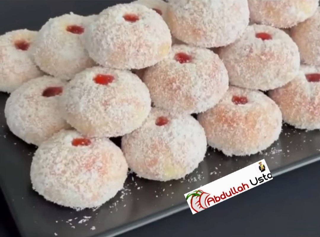 lezzetli reçelli ve hindistan cevizli harika bir kurabiye