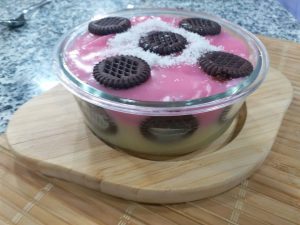iki tane tenceremi ocağa koyuyoruz.Sütümüzü içine döküyoruz.şekerimizi içine koyuyoruz kaynatmaya bırakıyoruz.Kaynadıktan sonra puding denizin içine dökelim.çikolatalı pudingin parlak görünmesi için tereyağını içine dökün.kaynatın ayrı bir kapta nişasta mızı su ile beraber açıyoruz.içine dokuyoruz döküyoruz.koyulaştıktan sonra.tabağımıza önce çikolatalı üzerine.çilekli pudingleri de koya bilirsiniz veya kat katta yapa bilirsiniz .susledikten sonra servis edebilirsiniz.Afiyet olsun