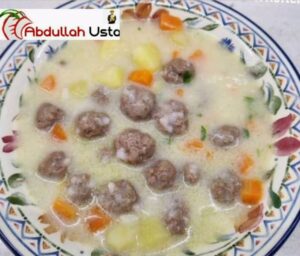 Kaynamaya başlayınca köfteler ve küçük doğranmış sarımsak da ilave edilir. Köfteler pişene kadar kısık ateşte pişirilir.