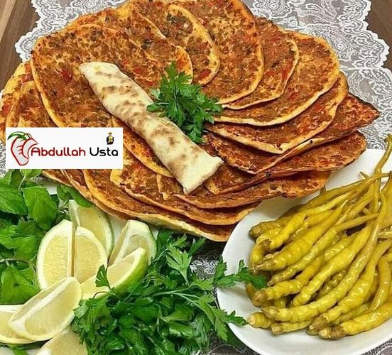 Ev Yapımı Lahmacun TarifiMalzemelerHamuru için malzemeler5 su bardağı un1,5 su bardağı su1 tatlı kaşığı tuzİçi için malzemeler350 gram dana kıyma1 adet soğan2 adet kırmızı biber3